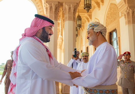 استقبل جلالة السلطان هيثم بن طارق، سلطان عُمان، في قصر البركة في العاصمة العُمانية مسقط، اليوم صاحب السمو الملكي الأمير محمد بن سلمان بن عبدالعزيز آل سعود ولي العهد رئيس مجلس الوزراء وذلك خلال الزيارة الخاصة التي يقوم بها سموه لسلطنة عُمان.