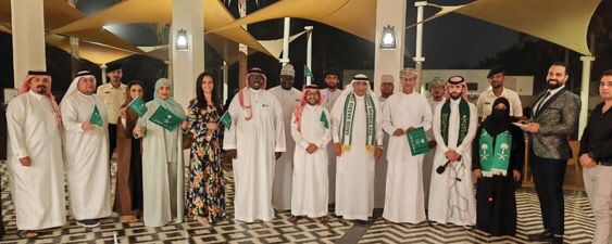 بحضور الاستاذ رواس حفيظ الرواس المدير عام المساعد لوزارة التراث والسياحة في سلطنةً عُمان ..احتفل الوفد الاعلامي السعودي الزائر للسلطنة باليوم الوطني الـ٩٣ في صلاله وذالك بمنتجع البليد أنتارا ،وقد بداء الاحتفال بالسلام الملكي ثم كلمة الزميل عطية الزهراني نيابة عن الوفد رفع من خلالها اجمل التهاني والتبريكات الى خادم الحرمين الشريفين وسمو ولي عهدة الامين واشار الى النهضة الكبيرة التي تشهدها المملكة في شتى المجالات ورؤية سمو ولي العهد التي غيرت الكثير من الانظمة بما يعود بالتقدم والتطور بما يخدم مصلحة الوطن