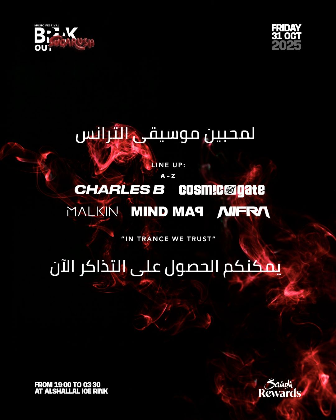 الفعالية تُعد من أقوى وأضخم حفلات الترانس والإلكترونيك التي تُقام في المملكة حتى الآن، وتأتي ضمن سلسلة الحفلات المميزة التي تقدمها BreakOut بأسلوبها الإبداعي الذي يجمع بين الإنتاج العالي والطابع الفريد في كل نسخة.