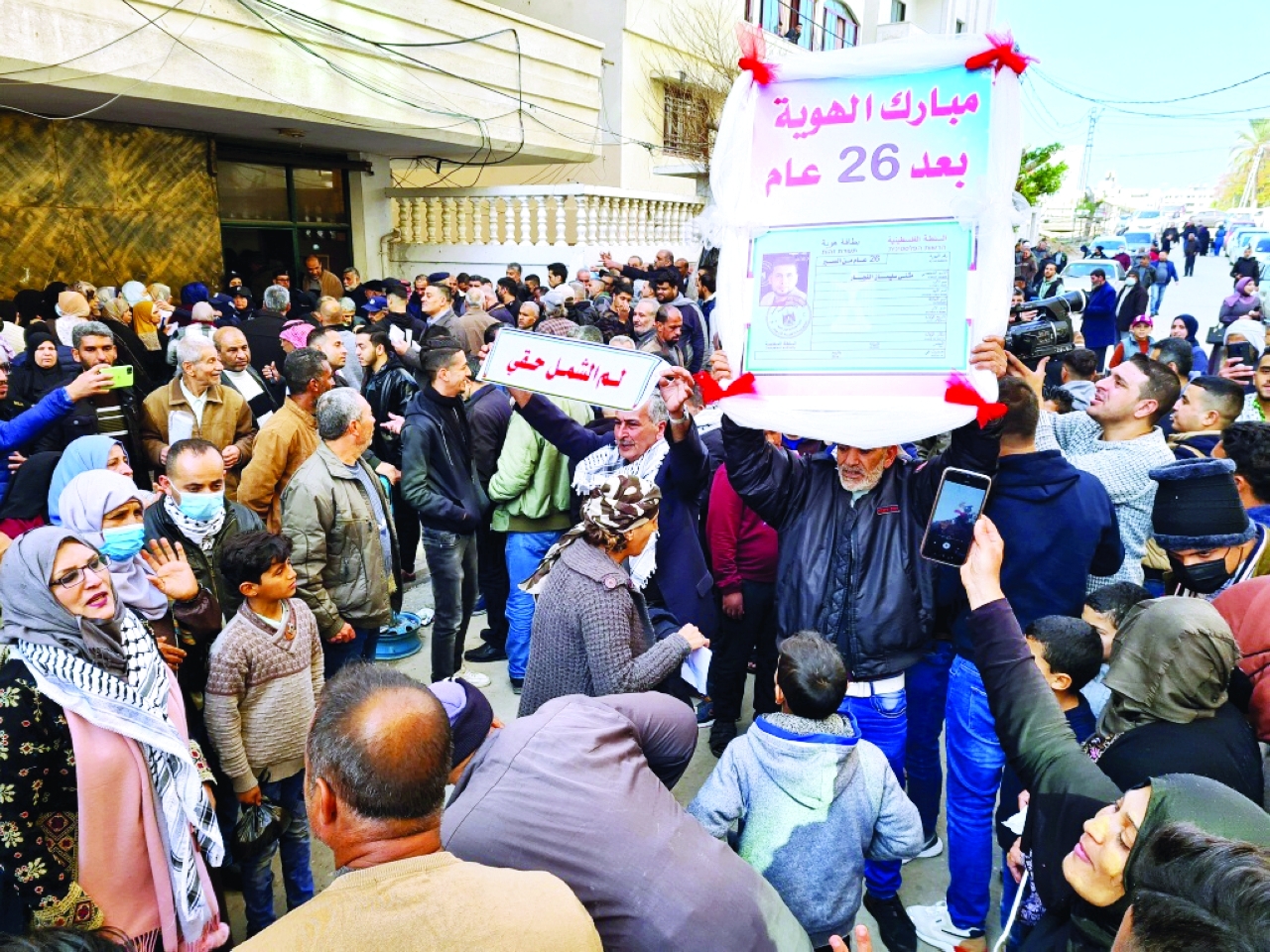 مثنى النجار صحافي فلسطيني، كان من ضمن الذين حصلوا على «لم الشمل»، استقبل الموافقة على طريقته الخاصة، أمام مقر الشؤون المدنية بغزة، حاملاً يافطة كبيرة كتب عليها مبارك الهوية بعد 26 عاماً من الانتظار، وحملت والدته يافطة أخرى تحمل صورة مشنقة للهوية والجواز المصفر الخاص به، وسط زفة كبيرة من أقاربه وأصحاب «لم الشمل»، مختتماً «احتفاليته» بذبح خروف أمام مقر الهيئة فرحاً بهذا القرار الذي أنهى معاناته.