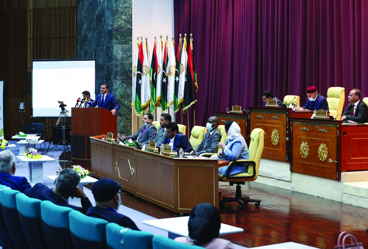 يصوت أعضاء البرلمان الليبي في جلسة عامة اليوم لفائدة من سيكلفونه بتشكيل حكومة جديدة، بينما حض رئيس الحكومة الحالية عبدالحميد الدبيبة أنصاره على التظاهر في الشوارع دفاعاً عن شرعية حكومته، مؤكداً أنه لن يتخلى عن منصبه إلى حين تنظيم الانتخابات.
